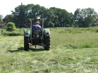 Mai / Juni 2011: Grasschnitt unter dem Streuobst mit dem Balkenmäher